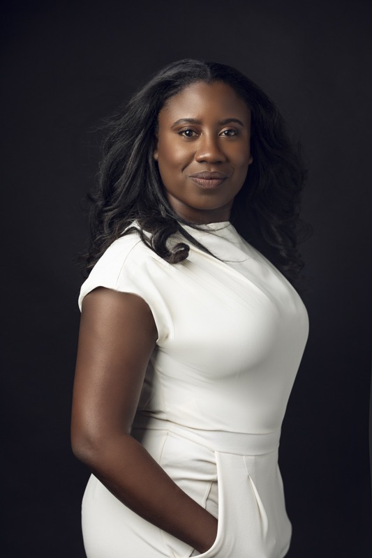 beautiful black woman in white outfit